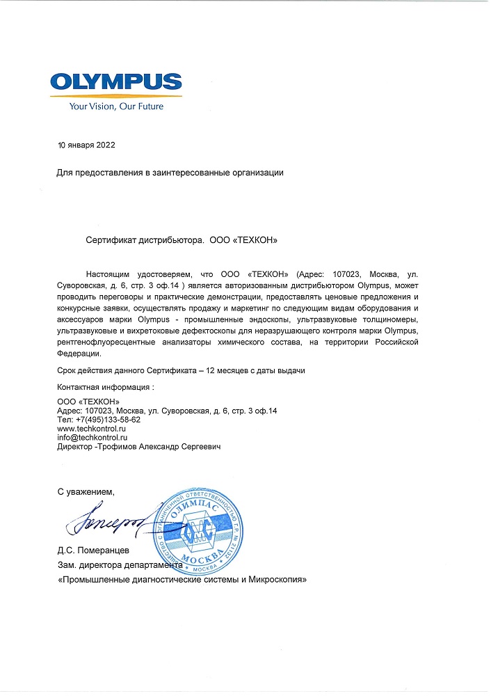 ООО "ТЕХКОН" является официальным дистрибьютором Olympus NDT